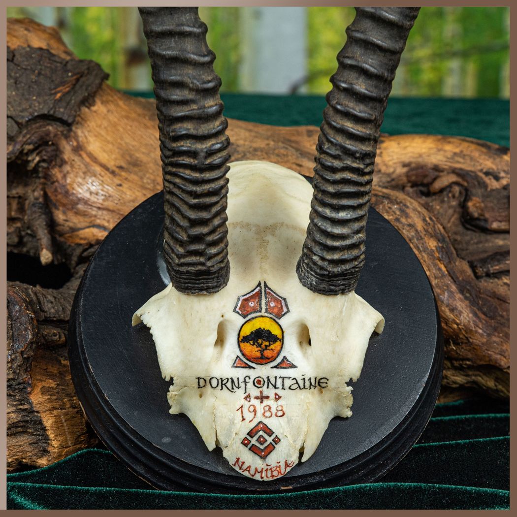 Ich beschrifte Ihre Trophäen oder Trophäenschilder gerne nach Ihren Wünschen. Entweder nur mit Schriftzug in verschieden Schriftarten Ihrer Wahl, oder mit Wappen. Sie haben hier freie Gestaltungsmöglichkeiten. Egal ob für Hirsch, Gams, Rehwild oder den Trophäen Ihrer fernen Jagdreisen. Alles ist möglich.